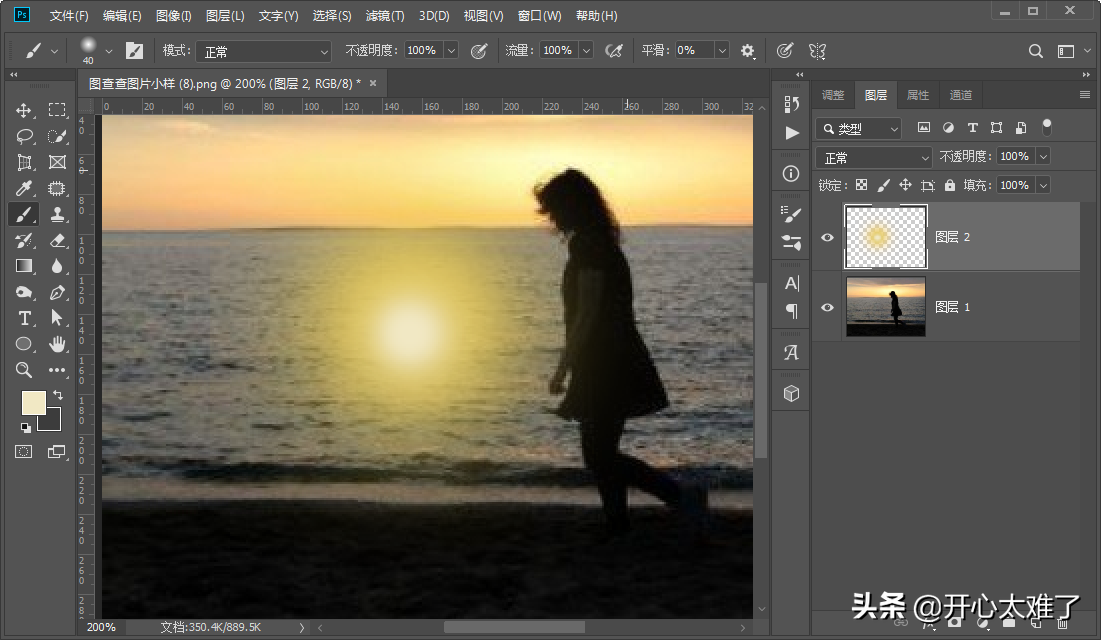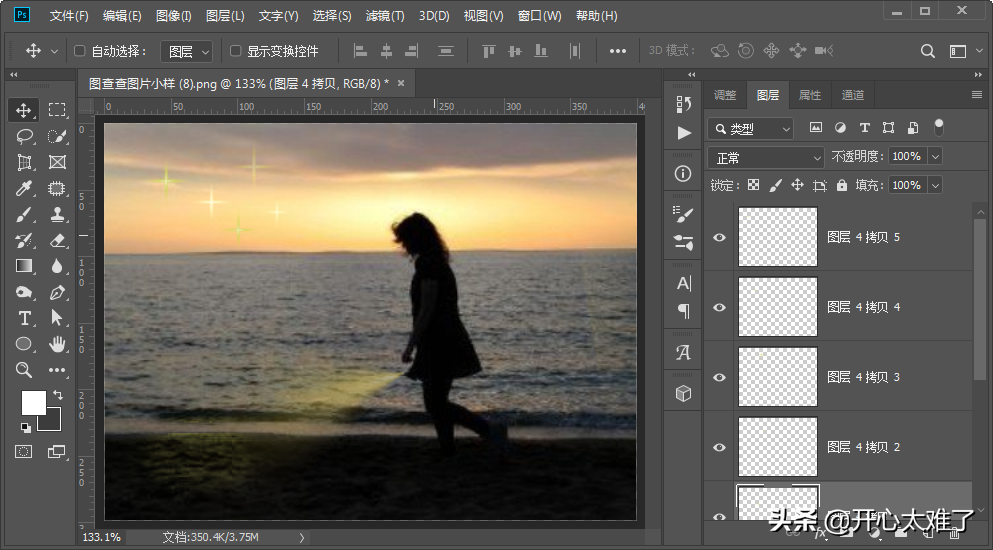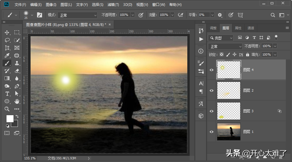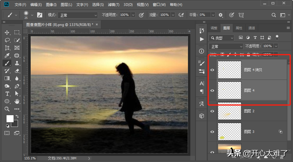 这样就完成了光效的制作,是不是很简单呐。如果光影生硬,可以调整图层的不透明度,使光影和画面更加融合。