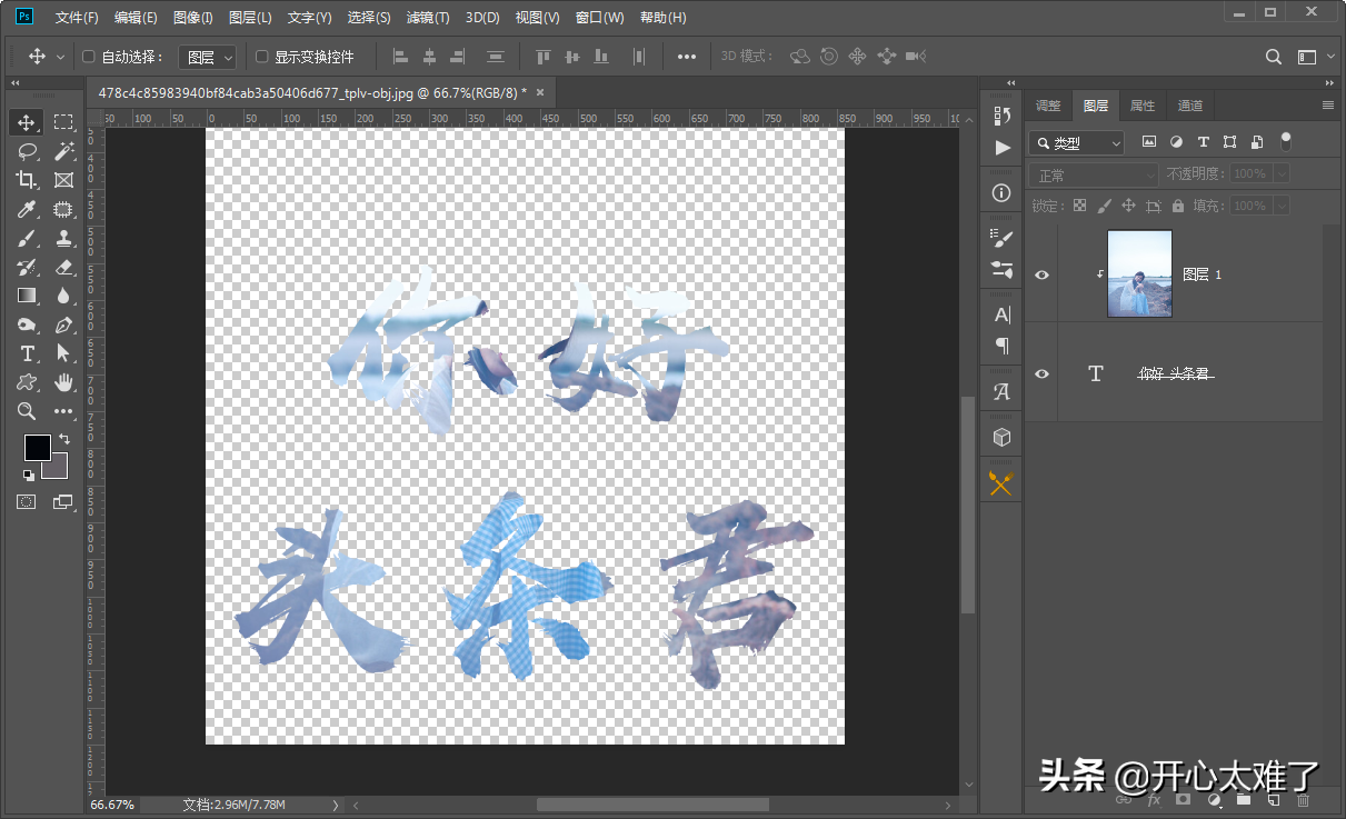 一个图层可以添加多个剪贴蒙版。下方的图形可以是文字、线条等任意有像素的图形。