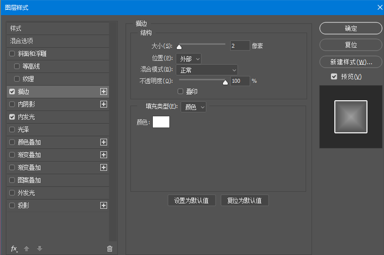 在图层样式面板中,点击描边右侧的加号,再添加一个描边样式,位置选择内部,将颜色更改为黑色即可。