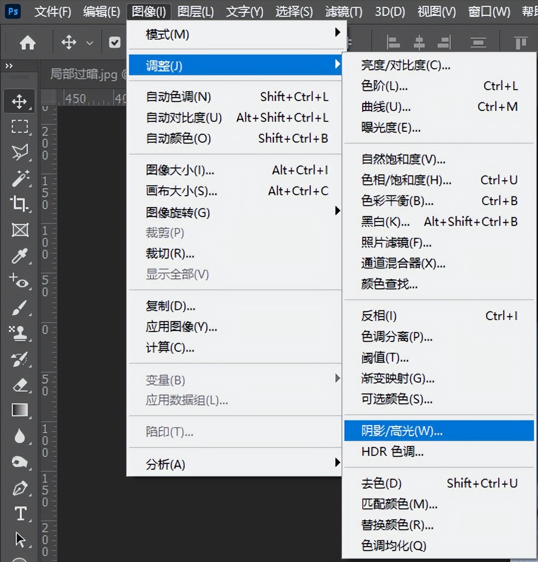 让我们先观察一下上面的图像,看看有没有问题?有些同学可能认为它很好,没有问题,但如果我们仔细观察,我们会发现这个图像的明暗分布不是很均衡。它直接从上面最亮的天空变成了阴影。我们应该使用这个没有过渡部分的图像(局部太亮或太暗)“图像”菜单下“调整”调整命令中的阴影/高光(无快捷键)