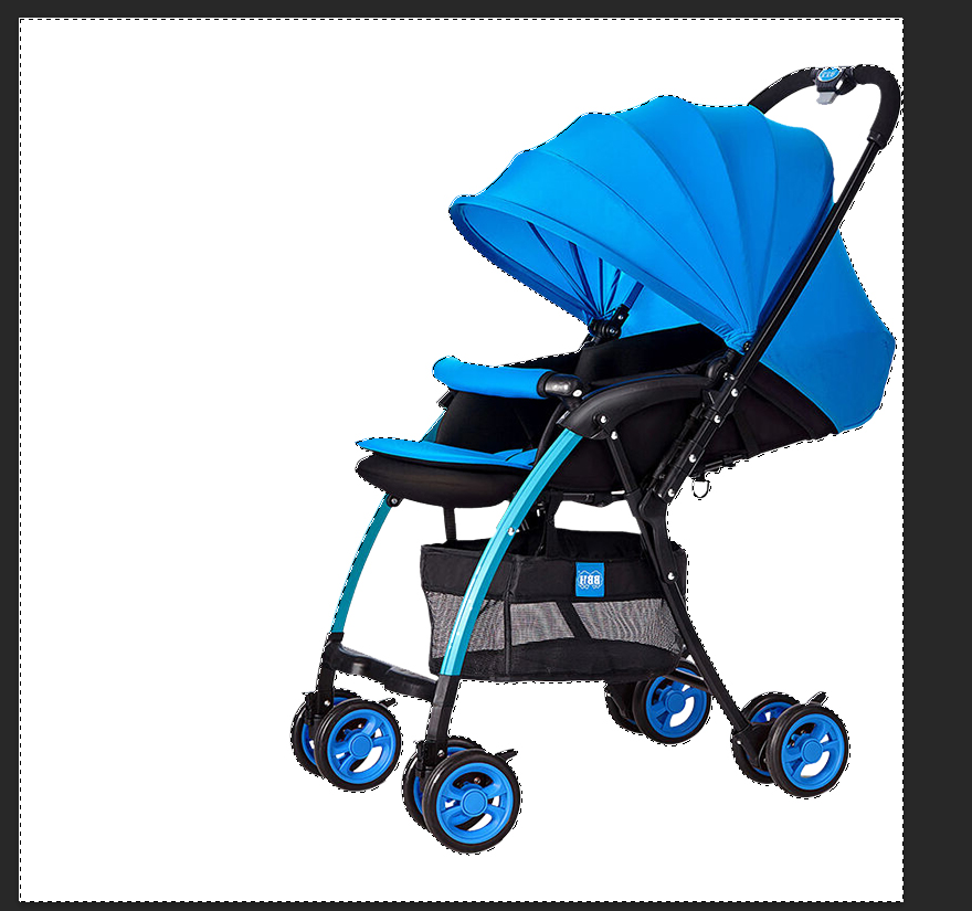 将所有白色区域选择上之后,要执行反向选择命令(我们现在选择的是白色背景,不是婴儿车),按住Ctrl+Shift+I就会将选区转换为图像本身选择的状态。