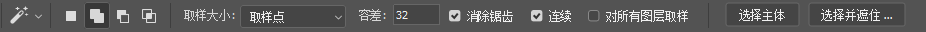 使用魔棒工具时,首先在上方的选项栏中设置选区的加减和容差值。