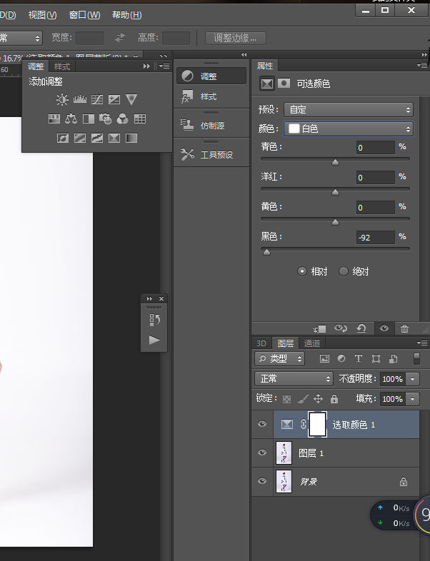 1,使用可选颜色,先建立一个可选颜色的图层如图1,把颜色换成白色,所谓的去除灰色,就是把白色中的黑色减少,如果觉得还不够白的话,把可选颜色拖到新建图层上,在复制一层,相当于再操作一遍,这样后我们就得到白底图了,也可以利用图层蒙版来保留细节,让图层部分不