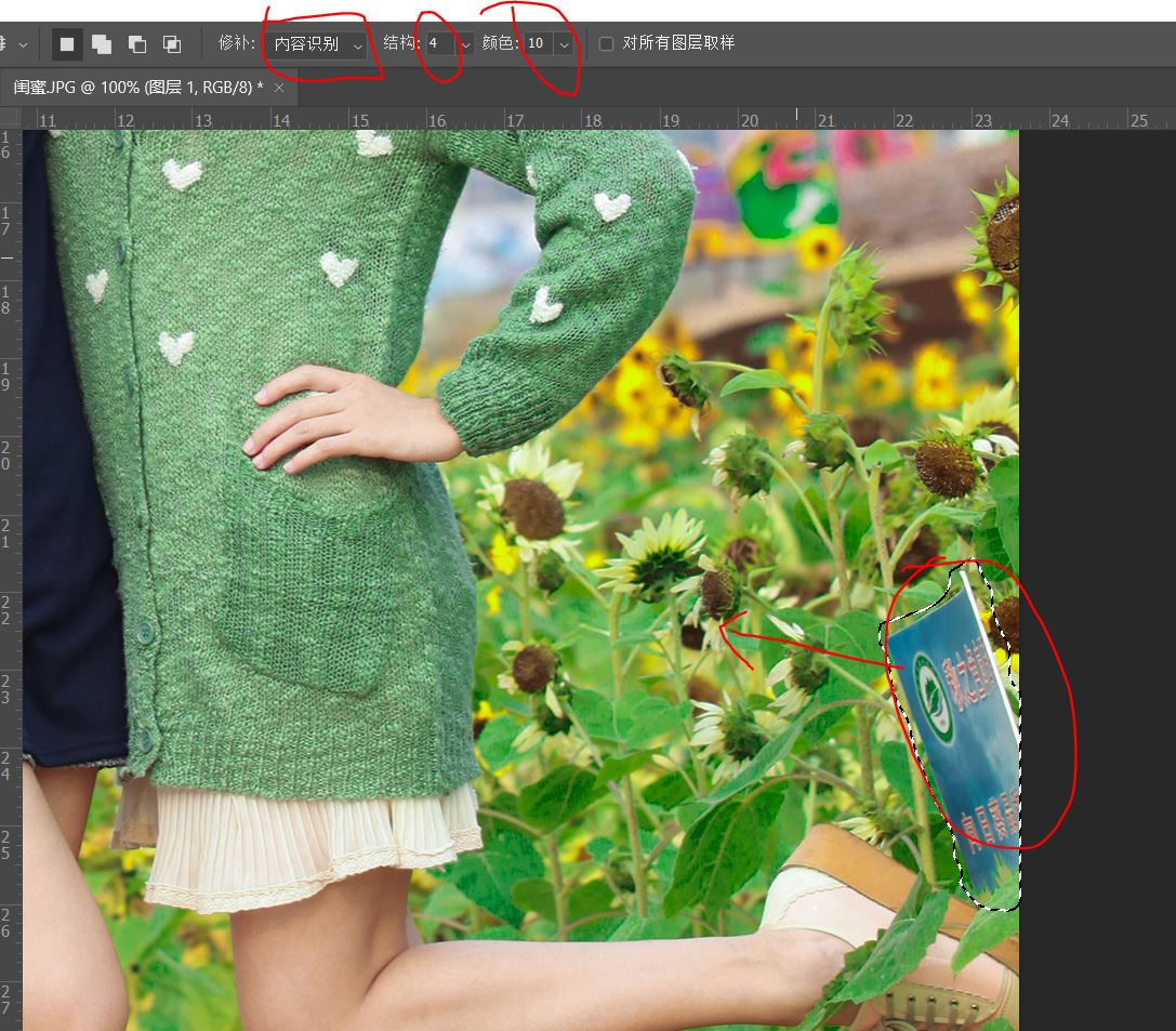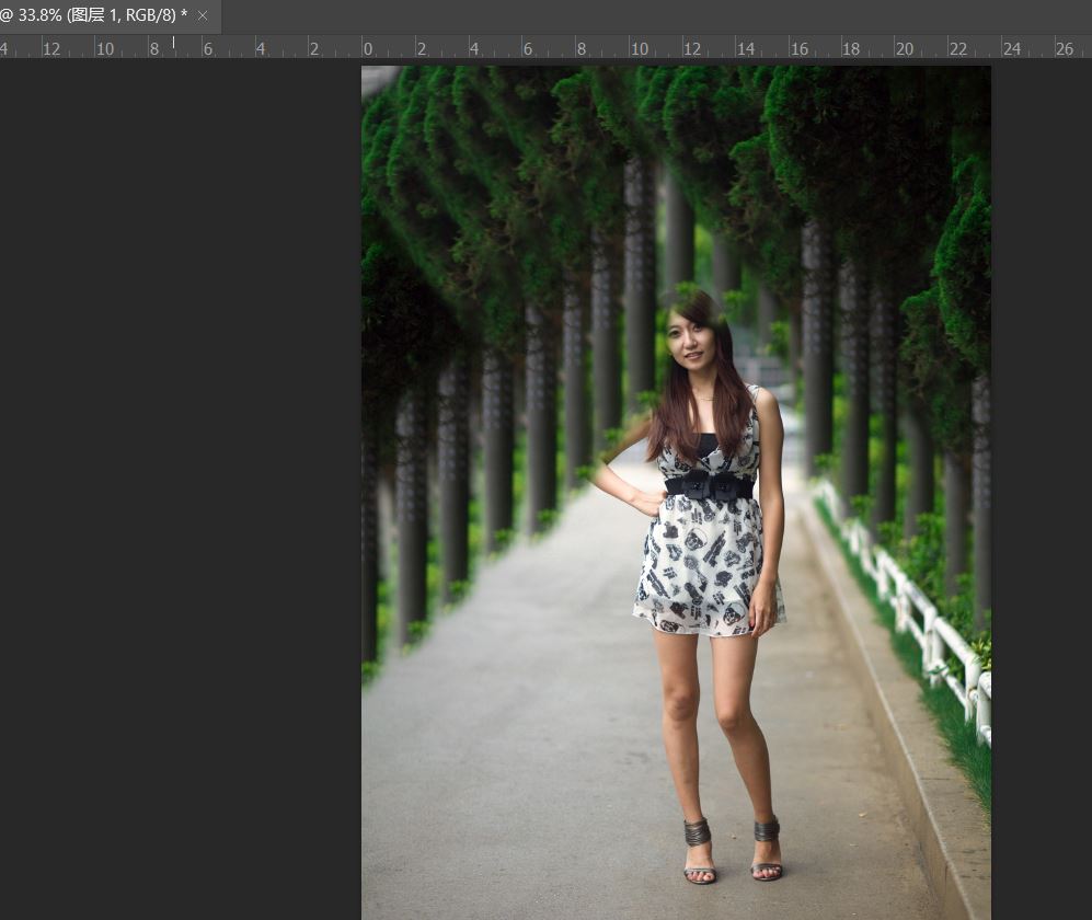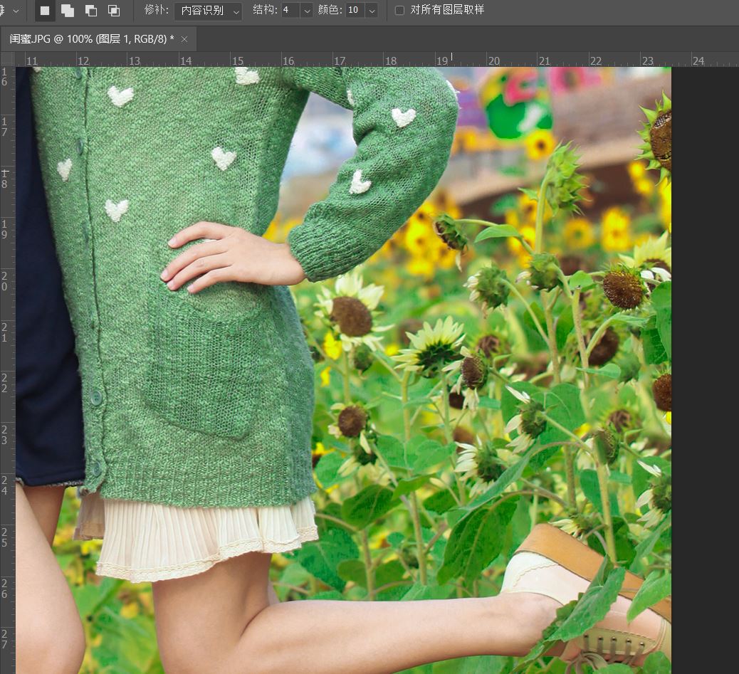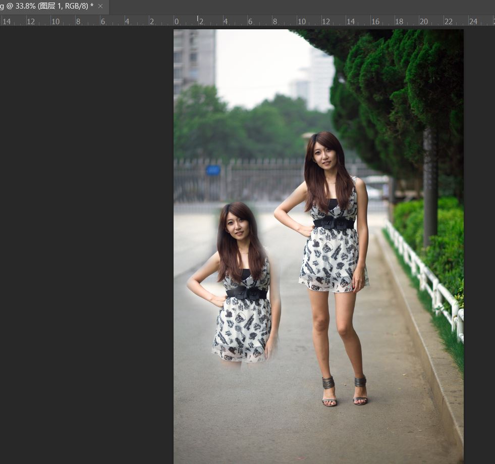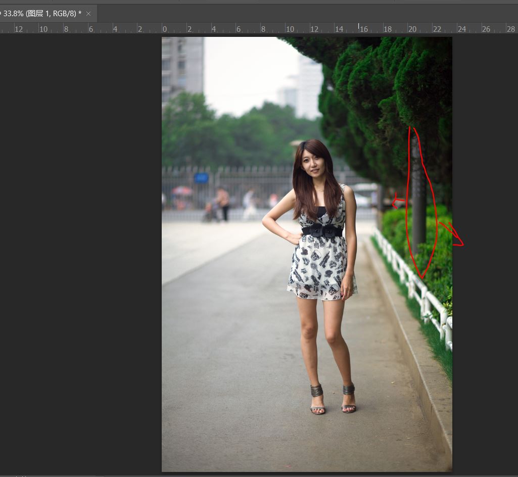 背景后面的人物我们处理掉了,当然修复画笔工具也可以完全复制图像,如上图我们复制了部分内容作为演示。
