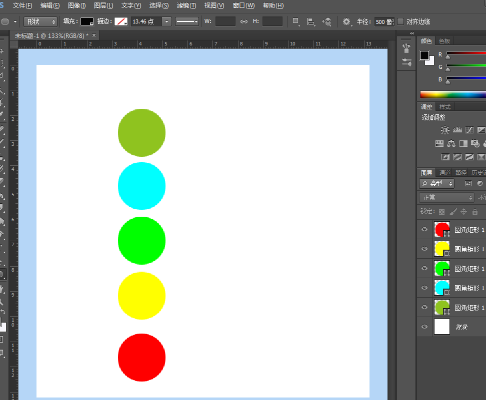 我们打开PS用椭圆工具画出几个圆,我们会往里面填充颜色,任意颜色就好