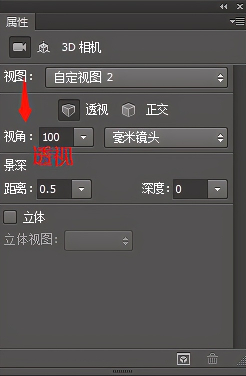 我们点击当前视图,属性里可以选正交或透视,透视就是模拟现实场景有进大 远小的透视关系,正交没有