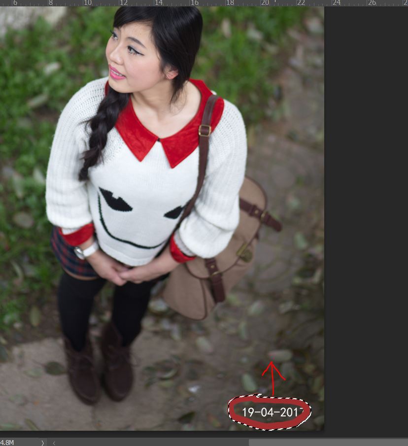 1.选择印章工具,然后按住alt键不放,单击鼠标左键,在日期照片周边取样,然后去涂抹即可,非常简单吧~,强调一点,画笔一定要选择柔角画笔,避免效果生硬。