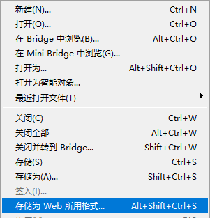 将图片在PS中打开以后,点击【文件-存储为Web所用格式】