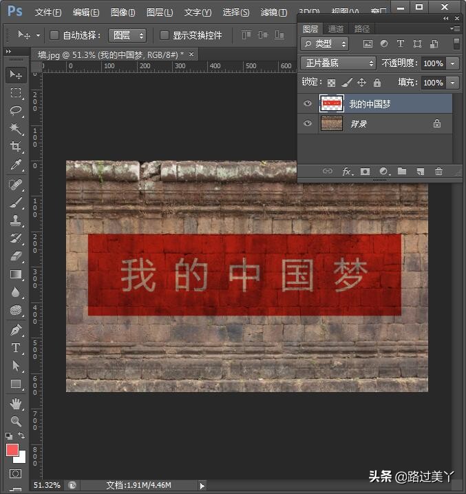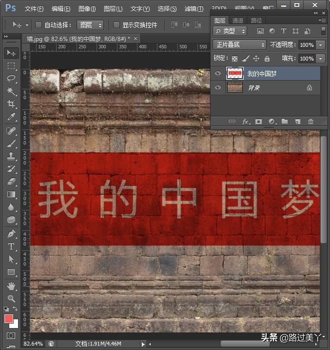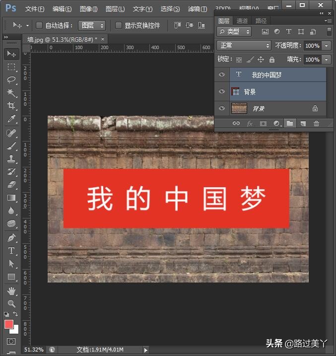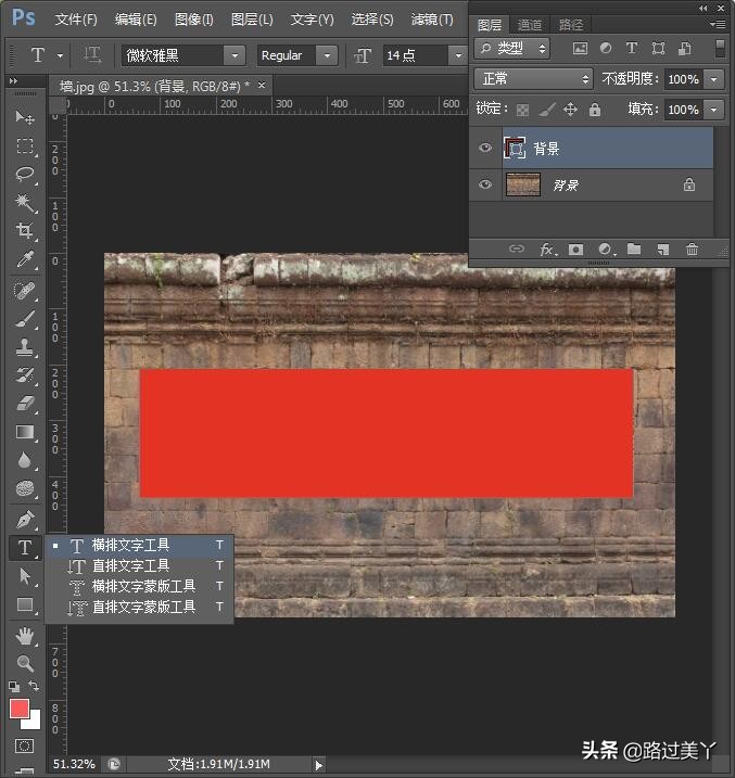 4、Ctrl+E,把矩形图层和文字图层进行合并。