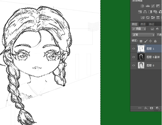 如果你有按上面的操作来,提取线稿是轻而易举,再也不用担心因线稿和背景同一图层而烦恼啦!线稿脱离了背景的束缚,上色工作效率加倍,前面提到的小伙伴用了我的方法,完成一个上色作品仅用了十分钟!