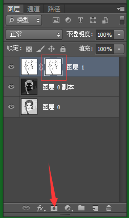 5、接着菜单栏的窗口——通道,选择红黄蓝其中的一个通道,点击下方的小圆,把通道建立选区,回到图层,点击添加图层蒙板,Ctrl+i 反相,接着把下面的两个图层眼睛隐藏,就得到了透明背景的单线稿图层啦!如果提取出来的线稿颜色不够深不够清晰,可以多复制两个线稿图层即可。