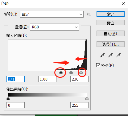 4、得到新的盖印图层后,点菜单栏的图像——色阶(快捷键Ctrl+L)打开色阶选项,调整黑白色块。将黑白色块往中间移动调整就好,具体调整多少得看图而定,这一步主要是为了加强黑白对比。