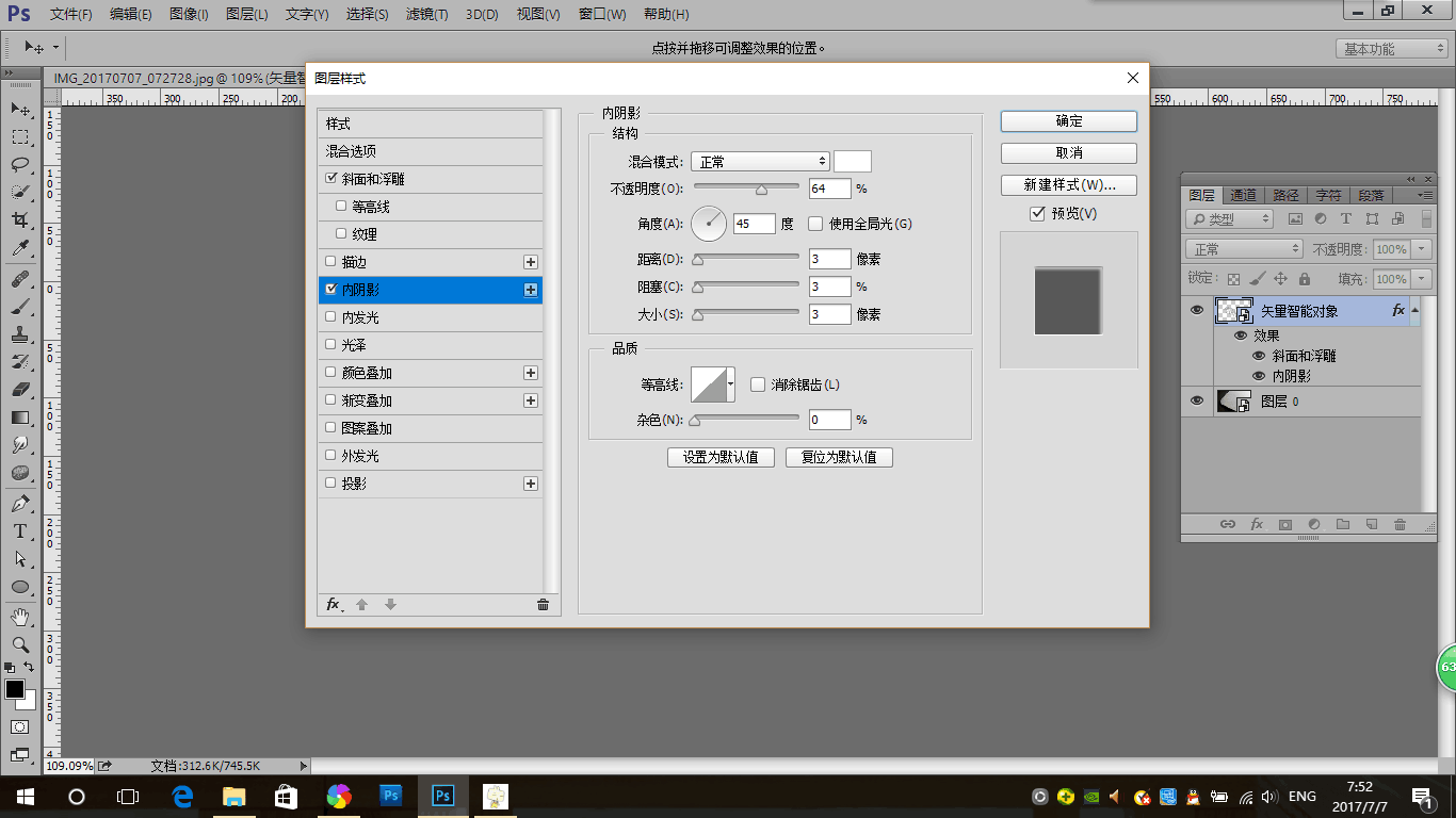 4.给logo图层添加一个内阴影图层样式,使logo的立体感更明显,参数设置如下