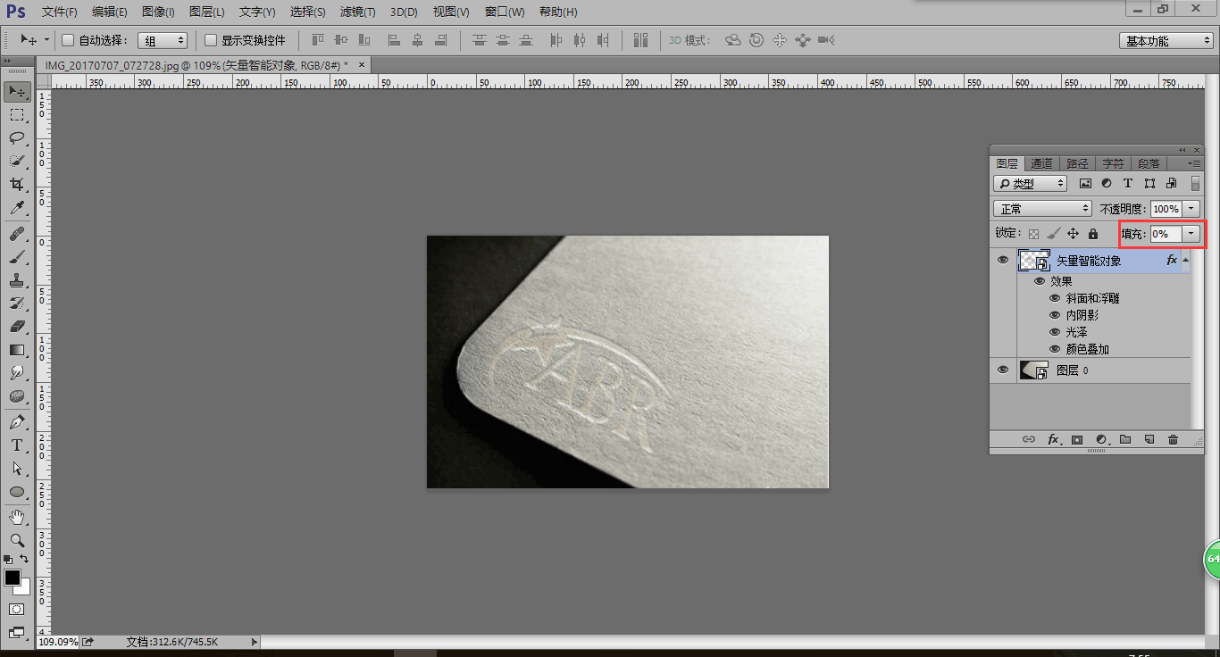 7.现在我们会发现颜色有深有浅,是因为导入的logo的颜色不一致,这时我们把logo的填充值改为0%,这样就是刚刚填充的颜色了,而且深浅一致