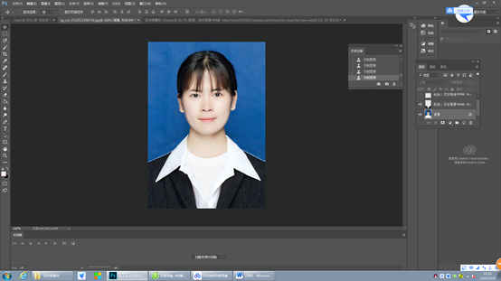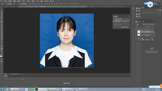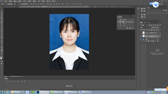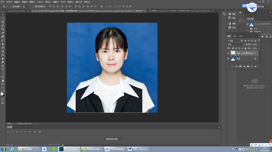第4步:利用图章工具将多出的部分擦除,整个证件照就完成了。