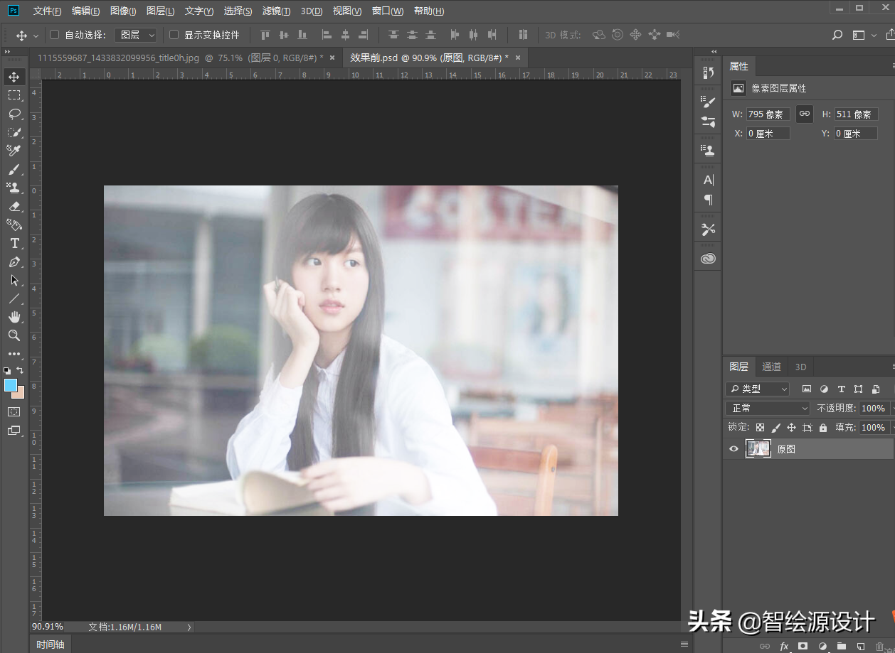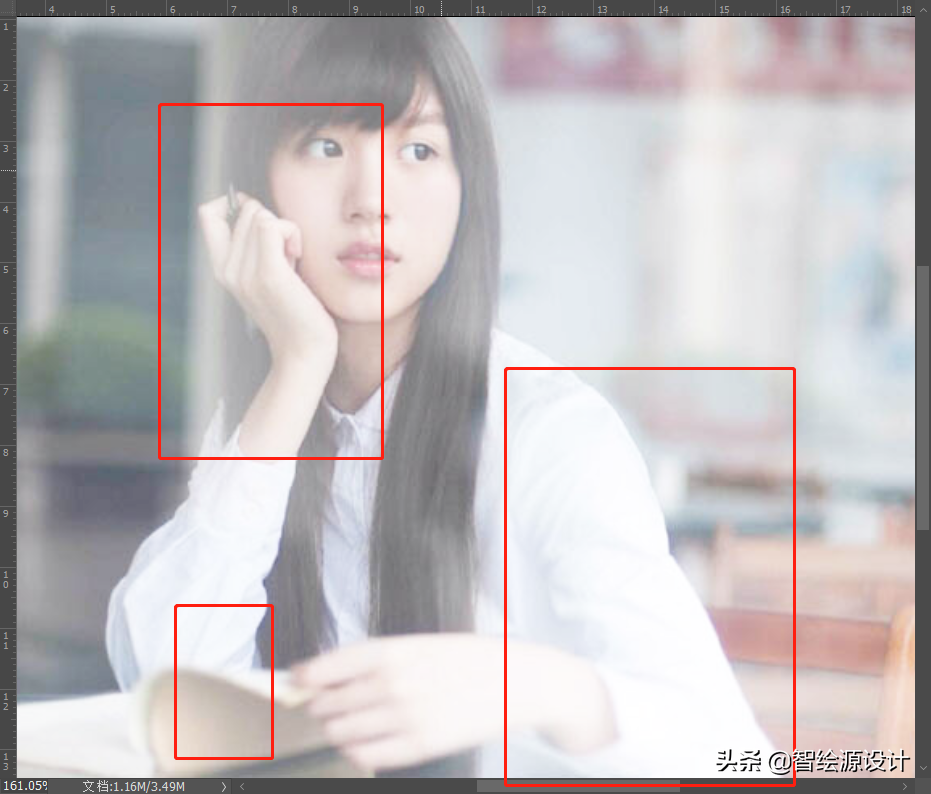我们会发现美女的袖子模糊的看不清纹理了,还有手腕,书