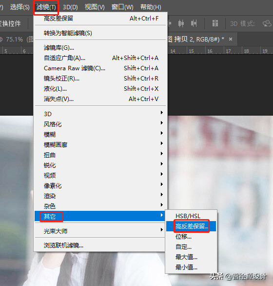 第三步:选中拷贝2,选中滤镜-其他-高反差保留,我们是要保留细节