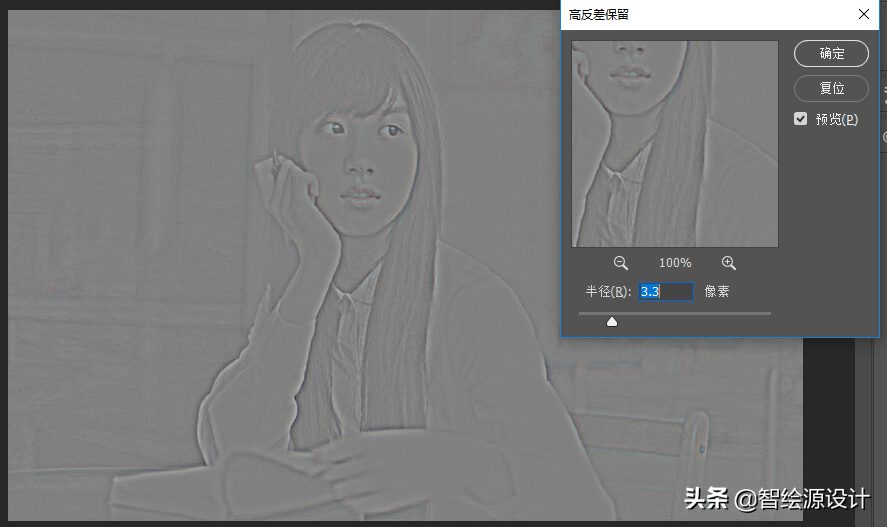 可以把半径调大一点,调到可以很清楚的看到细节纹理就可以了,点击确定