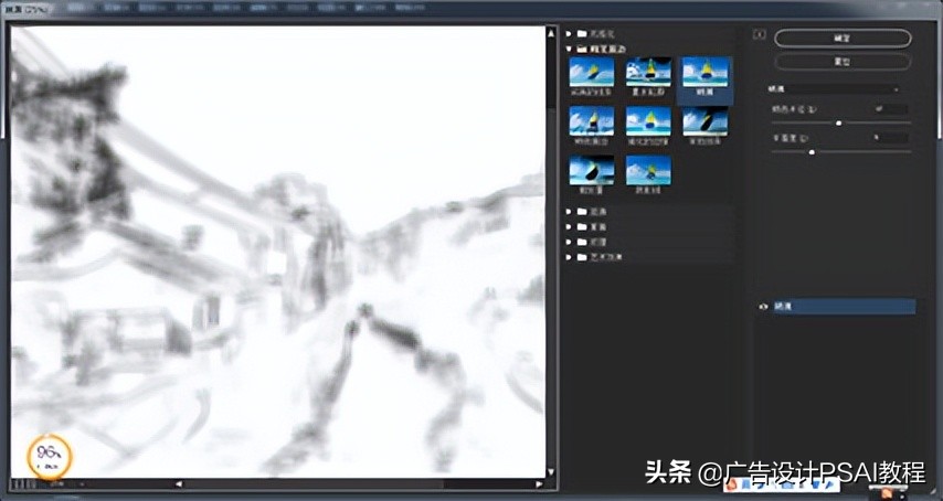 11、执行滤镜—滤镜库—画笔描边—喷溅,根据需要设置喷色半径和平滑度,如图所示。