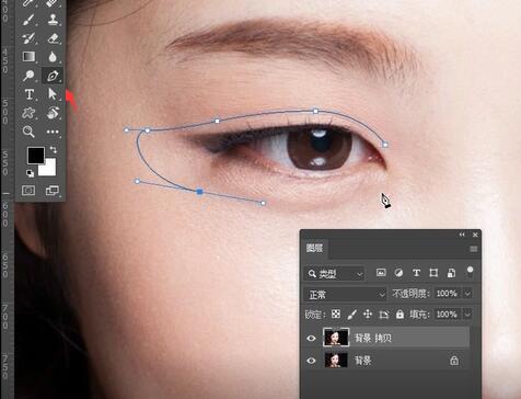 2然后点击钢笔工具,然后我们在人物眼睛上方绘制一条曲线,