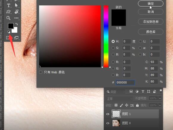 第3步:将前景色设置为黑色,