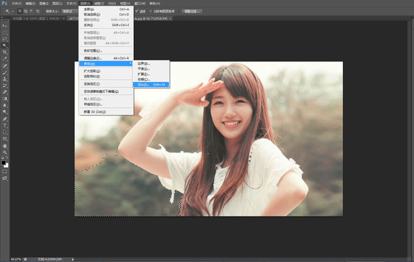 2. 选择菜单下的羽化:执行菜单栏中的选择-修改-羽化,这个应该是大家比较常用的了。
