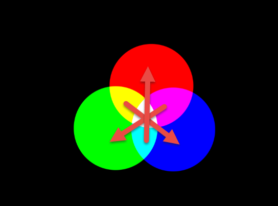 这个工具的应用要比通道混合器简单的多,核心就是下方的一张颜色混合的图。