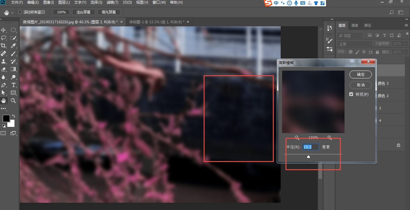 然后我们发现在桥的局部有点污点很难看,这里我们先盖印一个图层出来。执行滤镜高斯模糊。