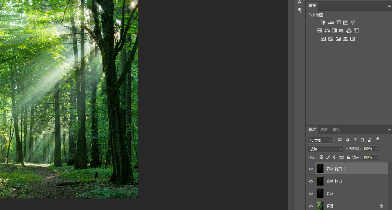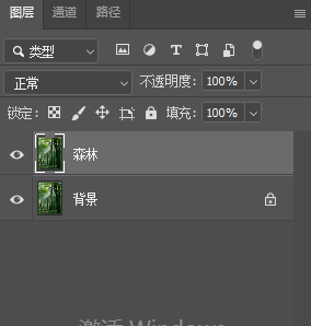 按Ctrl+j复制多一个图层出来。命名为“森林”,见1-1图;