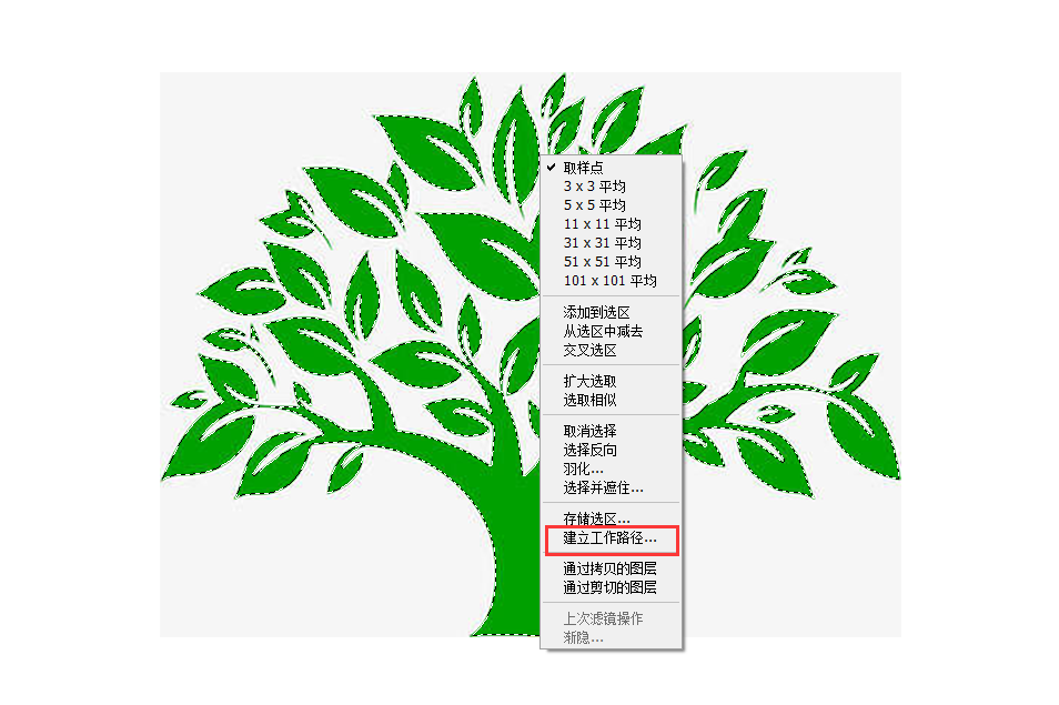 2、右键——建立工作路径——容差为1像素,确定即可;
