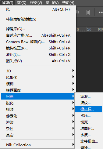 6、滤镜——扭曲——极坐标,选平面坐标到极坐标(见6-1和6-2图);