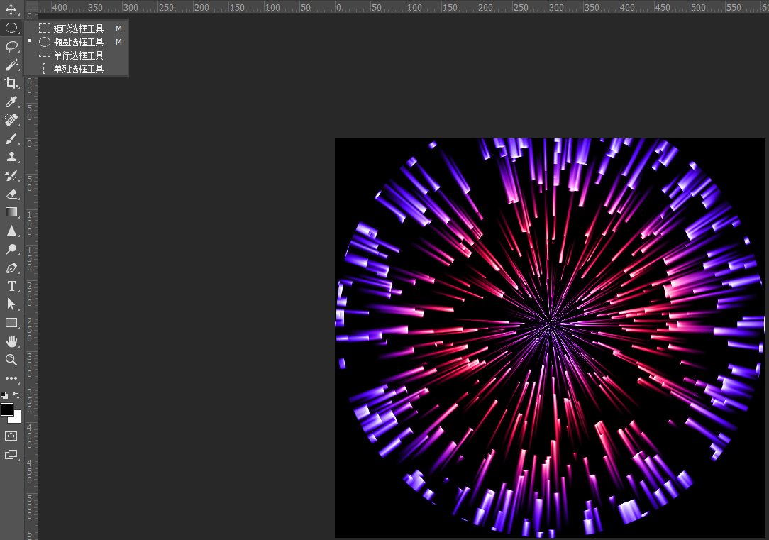 可以看到烟花整体不是很圆的,可以用”椭圆选框工具”把中心的烟花提取出来,见7-6图;