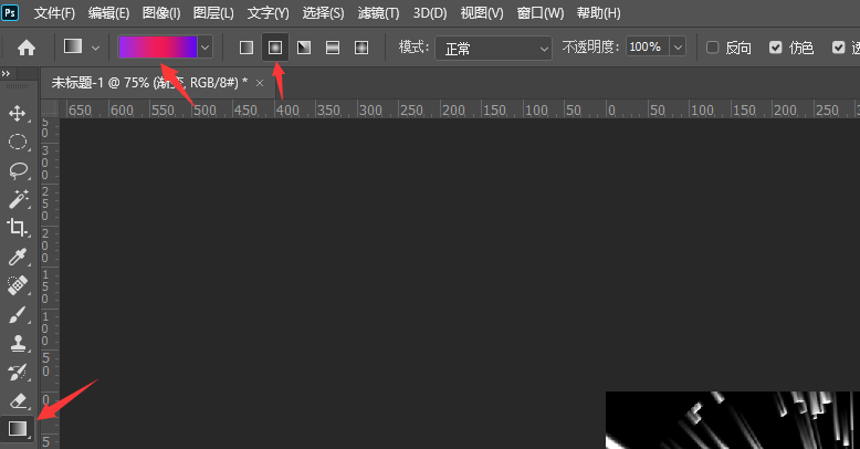 7、新建一个名为”渐变“的图层,选择渐变工具,径向渐变(见7-1和7-2图);