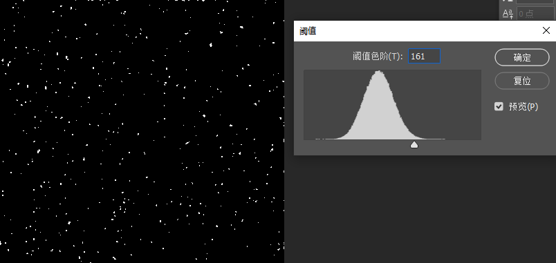 阈值:160左右上下都可以(有大小颗粒,颗粒之间的距离比较稀疏的就可以了)这样出来的烟花才有长短和大小变化哦,见4-2图;