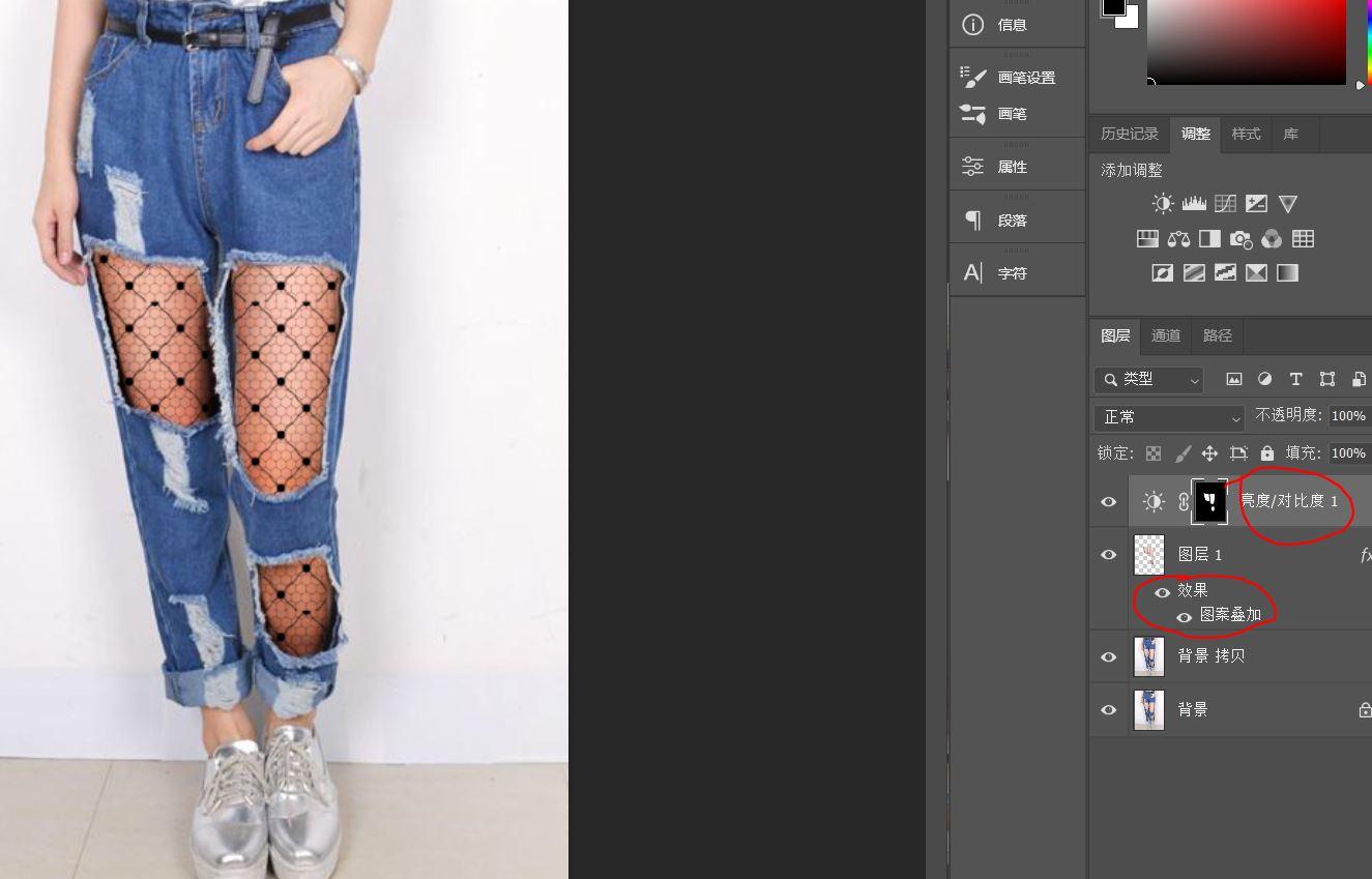 丝袜是性感的代名词,怎么给自己的图像添加丝袜效果呢?答案在结尾做出总结,先上图供各位看官欣赏。为了追赶新潮流,现在很多女孩穿破洞的牛仔裤,我们用这种实例进行演示。