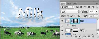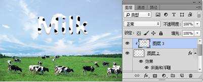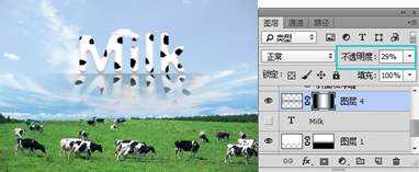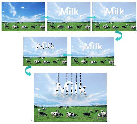 14. 打开“铁链”素材, 使用(移动工具)将“铁链”素材移动到“奶牛”文档中,复制一个副本移到相应位置,至此本例制作完毕,最终效果如图14所示。