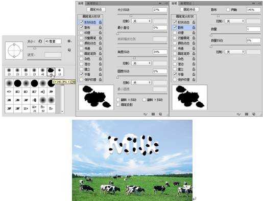 7. 新建一个图层3,使用(画笔工具)按F5键打开“画笔”面板设置参数值后,在图层中绘制黑色画笔笔触,如图7所示。
