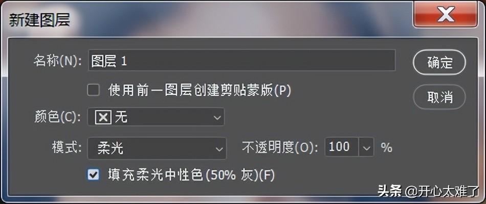 有两个方法可以建立中性灰图层,一是按“Ctrl shift N”快捷键,打开新建图层面板,模式选择“柔光”,勾选“填充柔光中性色”,即可建立中性灰图层。