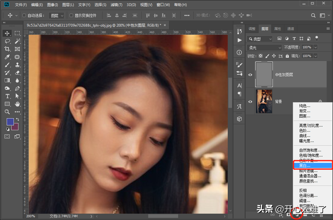 下面介绍一下商业修图技术——中性灰。中性灰技术可以保留人物皮肤质感,通过对人物皮肤像素进行加深和减淡操作,达到祛除瑕疵,磨皮塑形的效果。中性灰也可以对大光影进行调整,塑造高级的光影效果。中性灰的价值也更高一些,一般利用中性灰技术修一张图的价格在几千元不等。