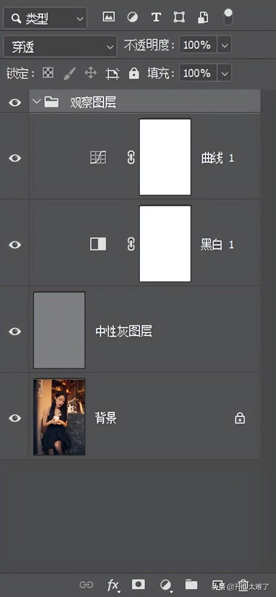 对于特别亮或者特别暗的区域,一次涂抹可能达不到理想的效果,可以建立多个中性灰图层多次调整。