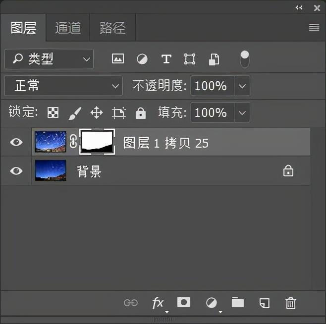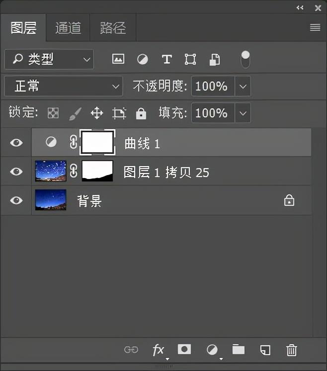 4.合并除背景以外的图层,得到图层1拷贝25图层,添加蒙版,用黑色的画笔涂抹出地面,添加曲线调整图层,增加对比度,如下图所示。