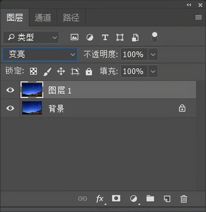 2.按Ctrl J复制得到图层1,并把图层模式更改为变亮。