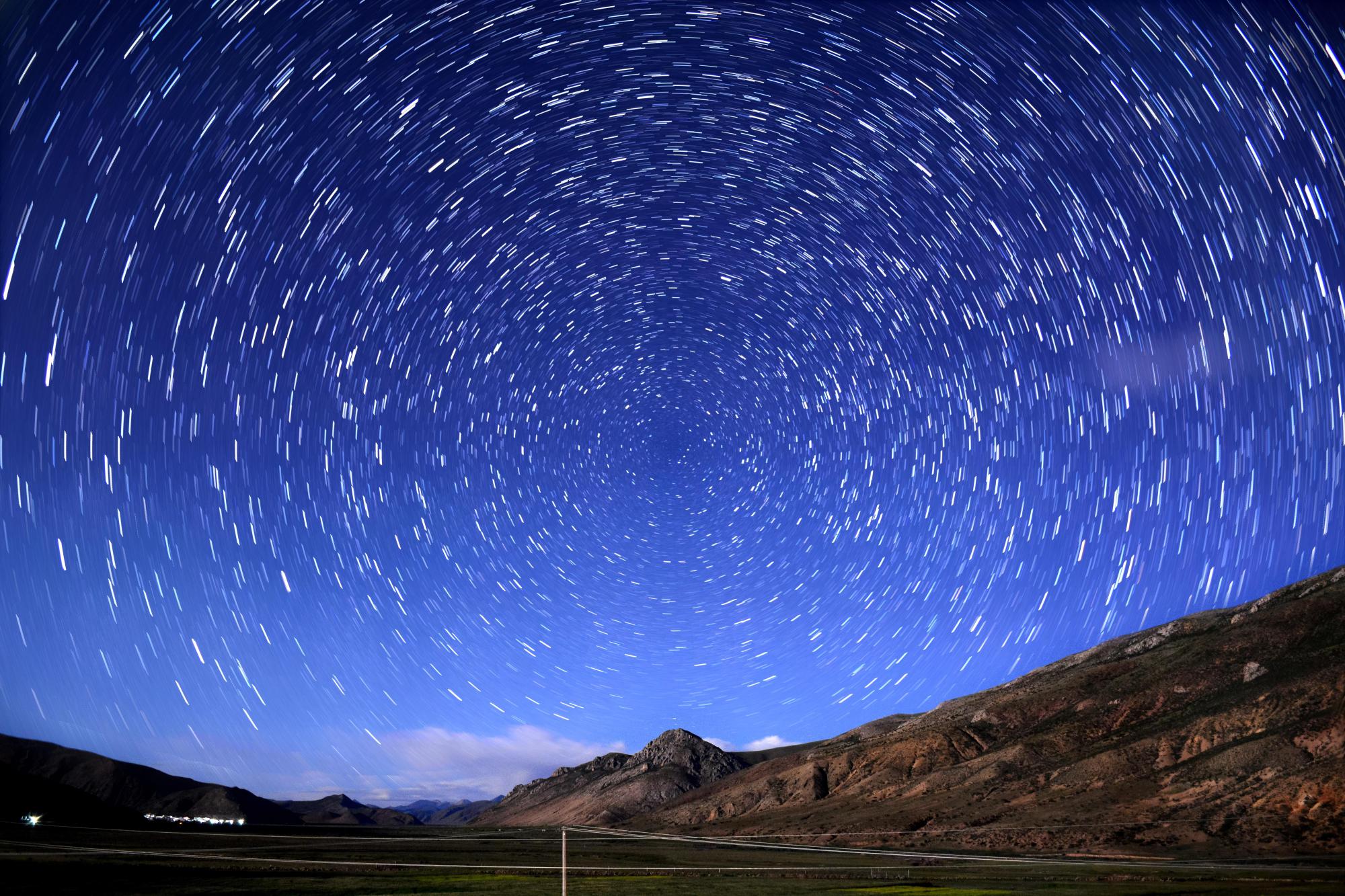1.PS中打开素材,发现素材里点点星空,并不是没有我们想象中的动感星轨的感觉。如下图所示。