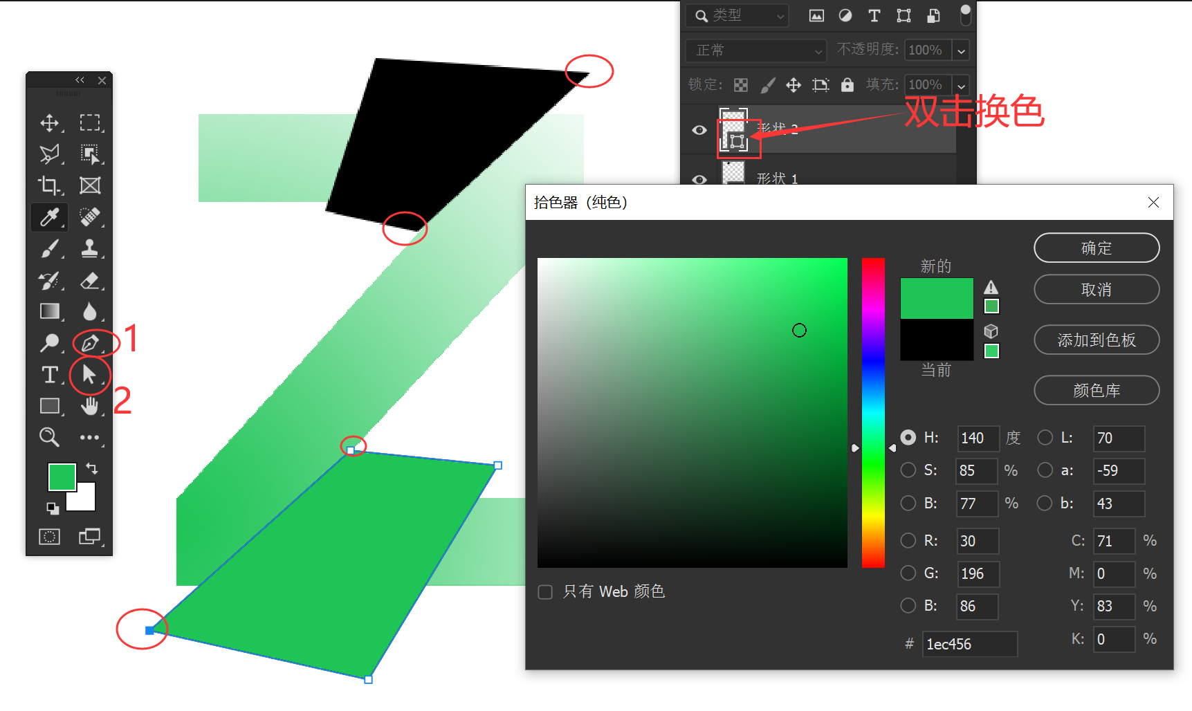 选择钢笔工个(1),设置为形状(2)依次点击3、4、5、6框出投影区