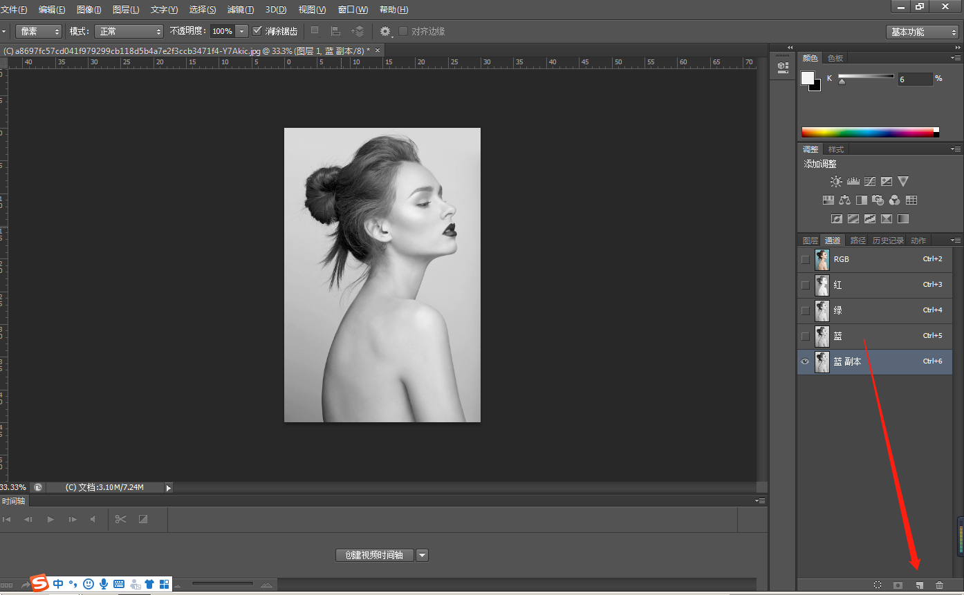 2、我们来选择一个颜色对比度高的,我们选择的是蓝色通道,复制一下如图操作