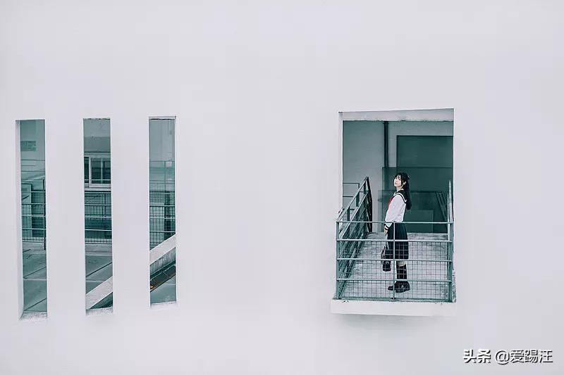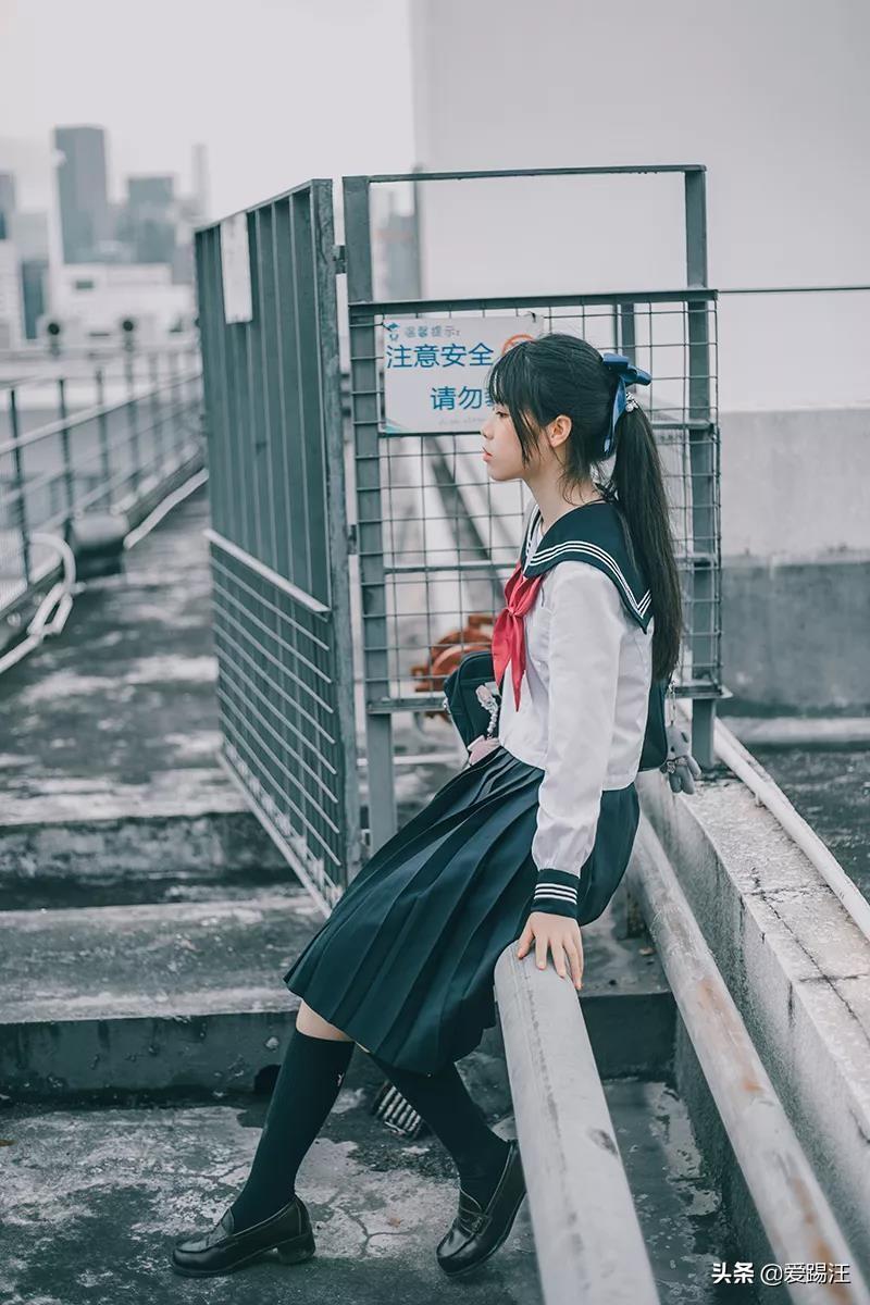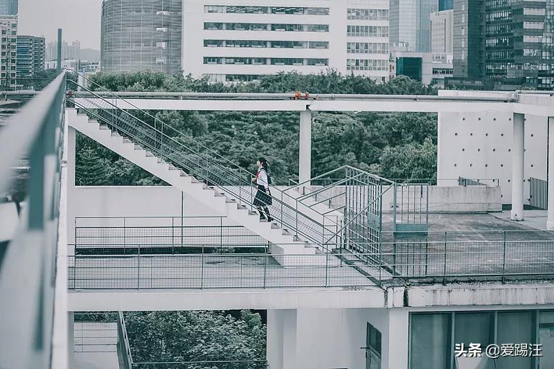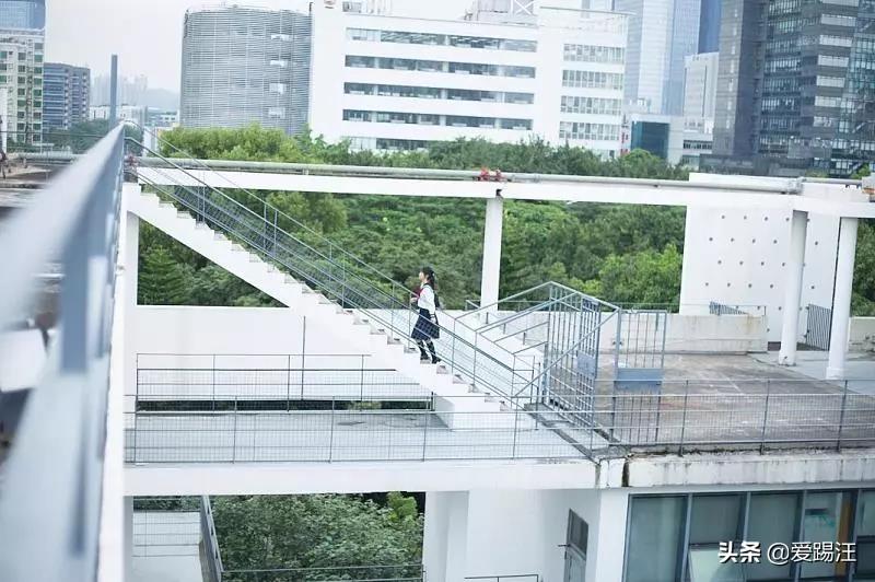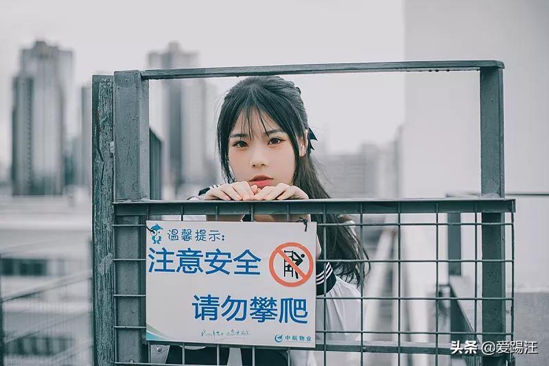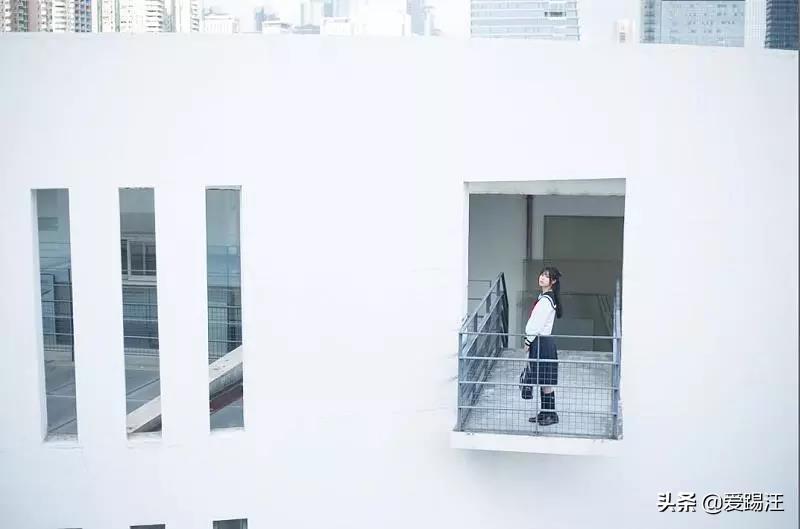 当时拍摄思路是以简单城市灰调为主,因为场景是在楼顶,建筑比较多,城市色彩比较丰富,但配合JK服并不是很完美,对于拍摄是一种挑战,对于大家都拍腻了的JK服大部分不是在教室就是在操场,要么就是在去操场和回教室的路上,场景还是大家都熟悉的深圳大学,这简直是一组极其平凡的不能再平凡的日系人像。对于不喜欢重复着别人套路的我,决定就算拍小清新也要加点新的元素或者去掉一些元素。镜头方面选择了最便宜的小痰盂50mm1.8。拍摄方面就以取景构图打破平常视角,比如这样: