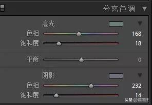 调整过后,会发现模特JK服白色部分比较纯,有点灰白色,这样看起来会比较干净。接下来色调分离,这东西可以和色温,色调曲线相辅相成,因为刚才调整HSL,显得人面部比较苍白,我回过头把色温再调整了一下,使他偏黄了一点,这个时候色调分离我就让高光偏青蓝一点, 阴影部分稍作调整偏蓝色,可以平衡一下。