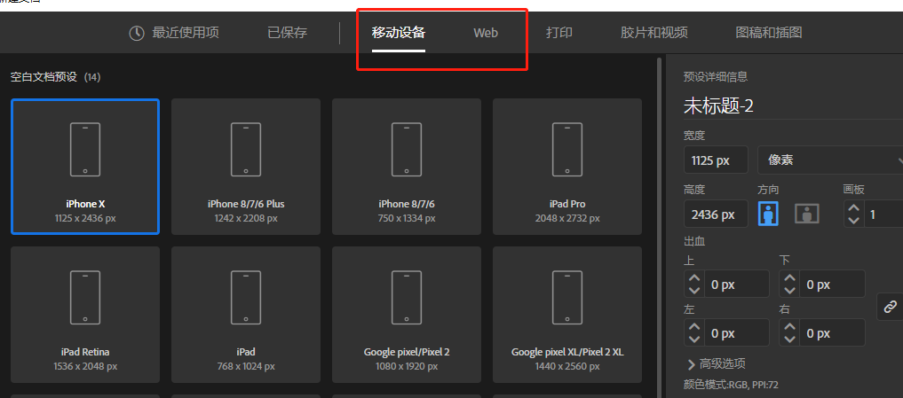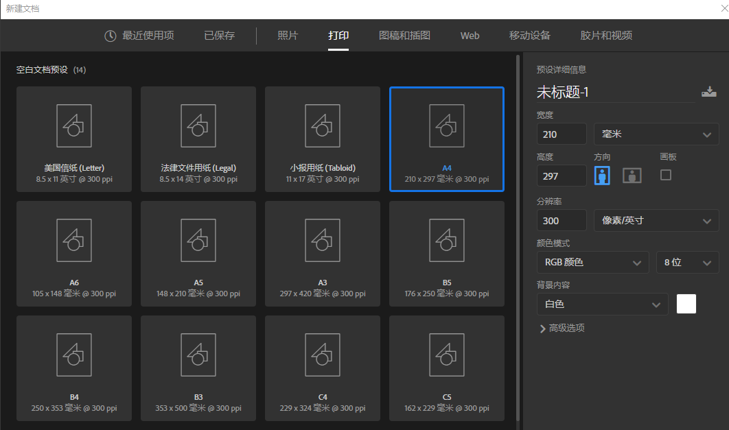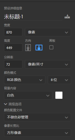 新建的文档一般默认的颜色模式RGB的,而且像素也是72dpi(dpi也就是分辨率)我们常用的尺寸单位是cm(厘米)和px(像素)。
