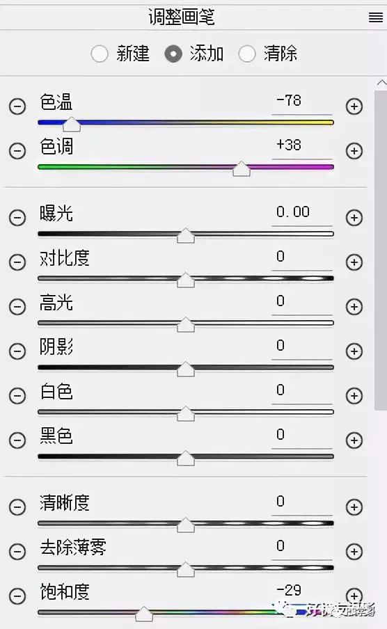6.选择“基本”选项卡,在右侧参数区的底部分别拖动各个滑块,以调整照片的色彩,并降低照片的立体感与细节,使人物变得更加柔和。