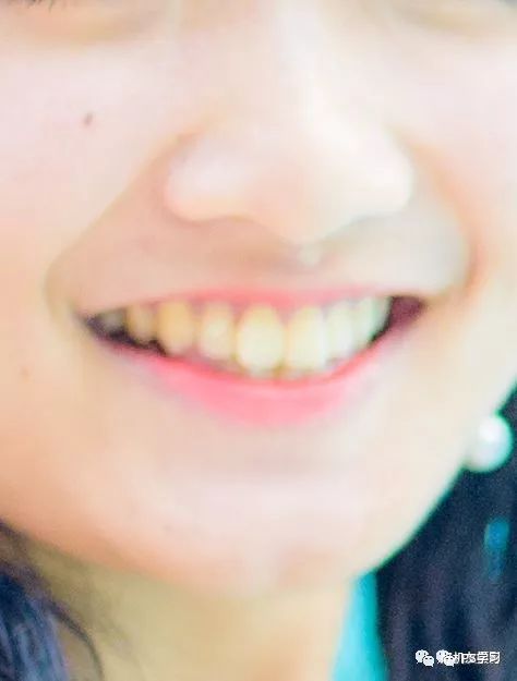 通过前面的调整,人物的色彩变得较为正常,但可以明显看出牙齿的颜色有些发黄,因而不太美观,下对其进行适当的调整。要注意的是,受Camera Raw功能的限制,我们很难完善的将这种泛黄的效果完全修除,因此只是尽量将其修除。用户也可以在完成其他处理后,转至PHotoshop中进行细致的调整,以彻底解决此问题。